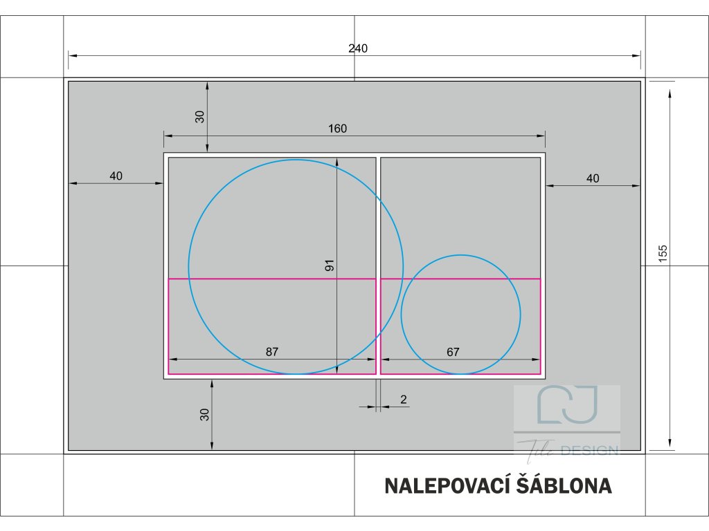 Samolepící šablona sloužící pro výřez tlačítka pod obklad. Nabízí možné tvary tlačítek: